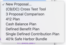 Step 3: Creating a Proposal: Click on the New Proposal Drop down to select the proposal type. Multiple Proposals types are displayed so use the one labeled for your desired plan design.